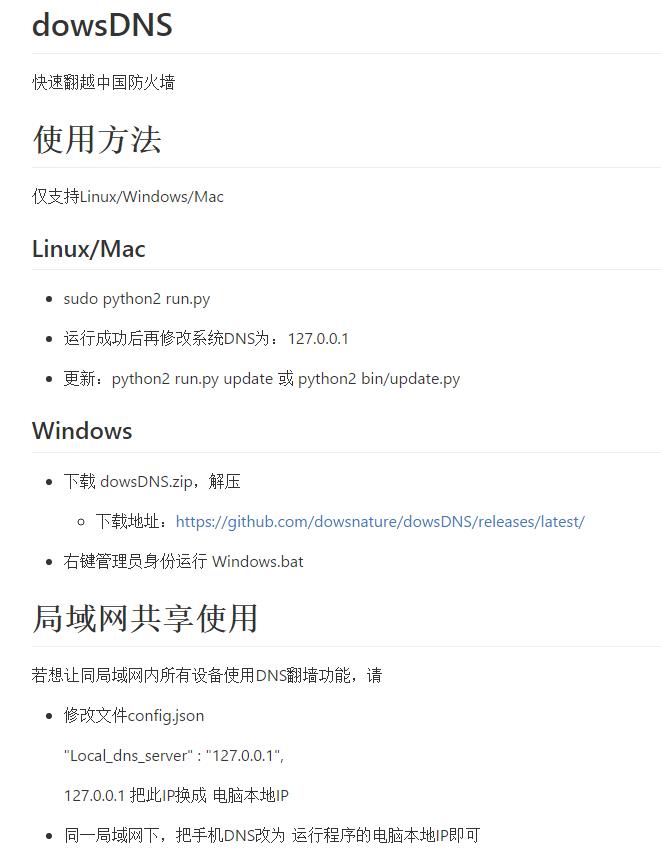 最近找到一个效果挺不错的一个翻墙软件dowsDNS。是Github里面的一个开源项目。