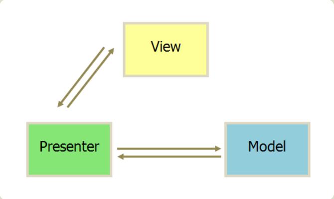 其中数据逻辑相当于M,Activity(负责View的绘制以及与用户交互)相当于V ,View于Model间的交互则为P,Model与View之间的交互由Presenter完成。还有一点就是Presenter与View之间的交互是通过接口的。