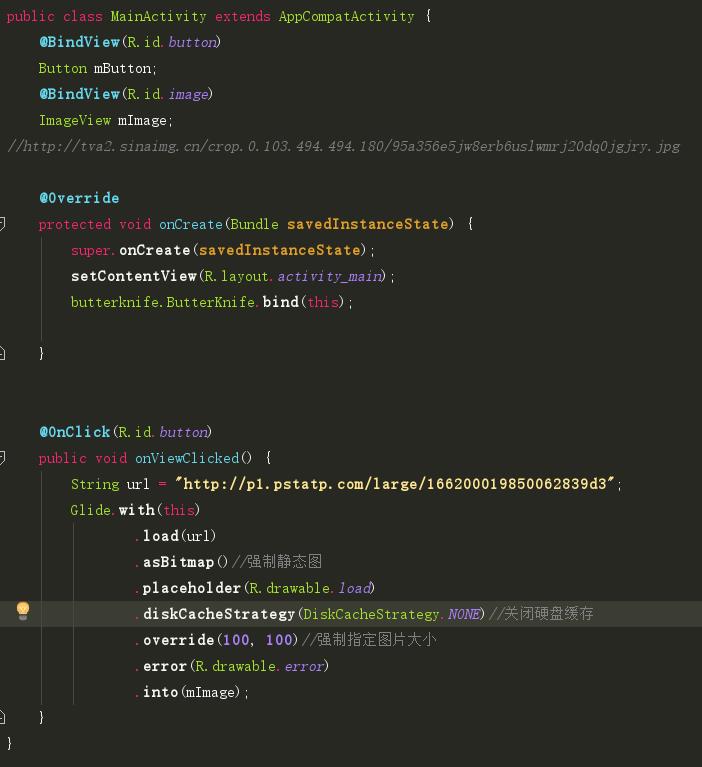 Android Butter Knife 框架 发表于 2017-07-24 | 评论数: 本文字数: 98 | 阅读时长 ≈ 1 分钟 just take a few notes 配置与使用 加多个Glide使用compile 'com.github.bumptech.glide:glide:3.7.0'