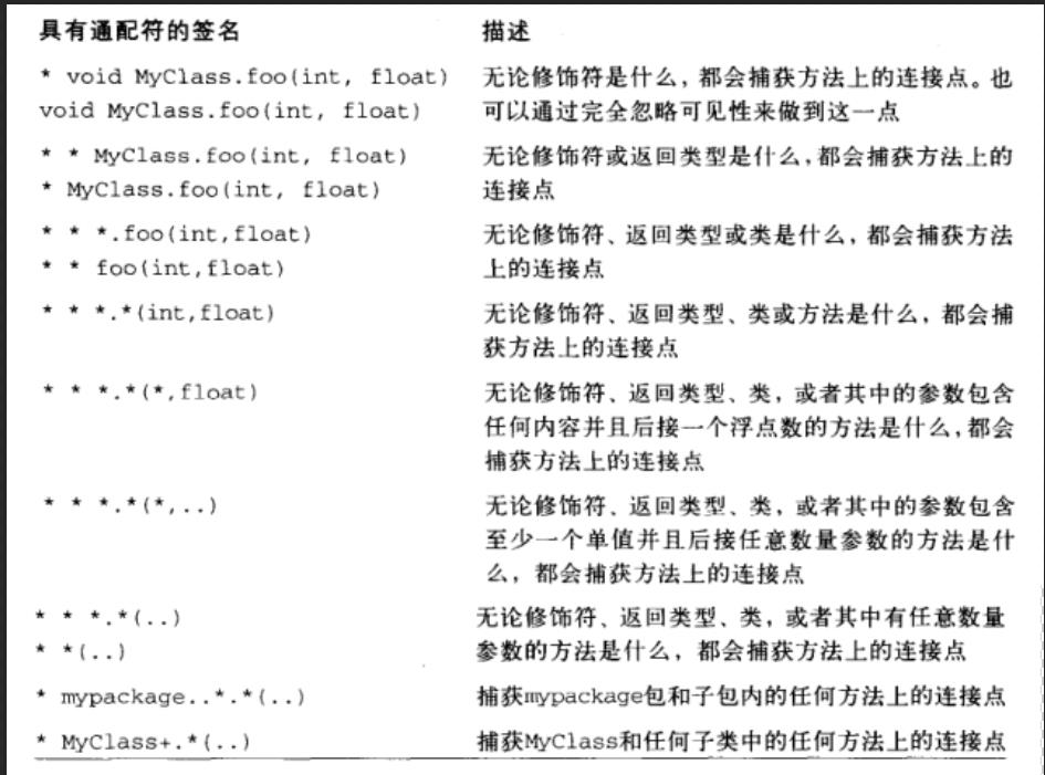 | 注解 | @完整路径 | 例如:@cczhr.com.aoptest.DebugTool (..) |