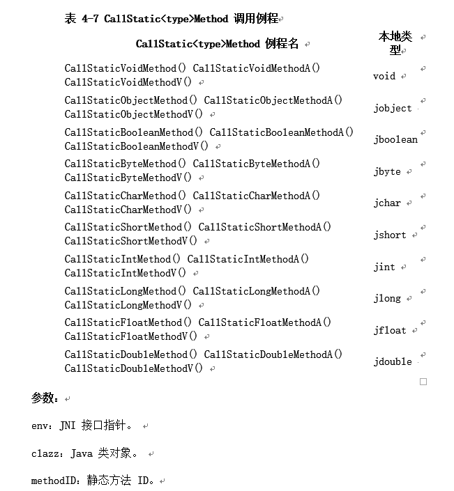 env->CallStaticVoidMethod(clazz,staticMethod,staticStr,1,1);